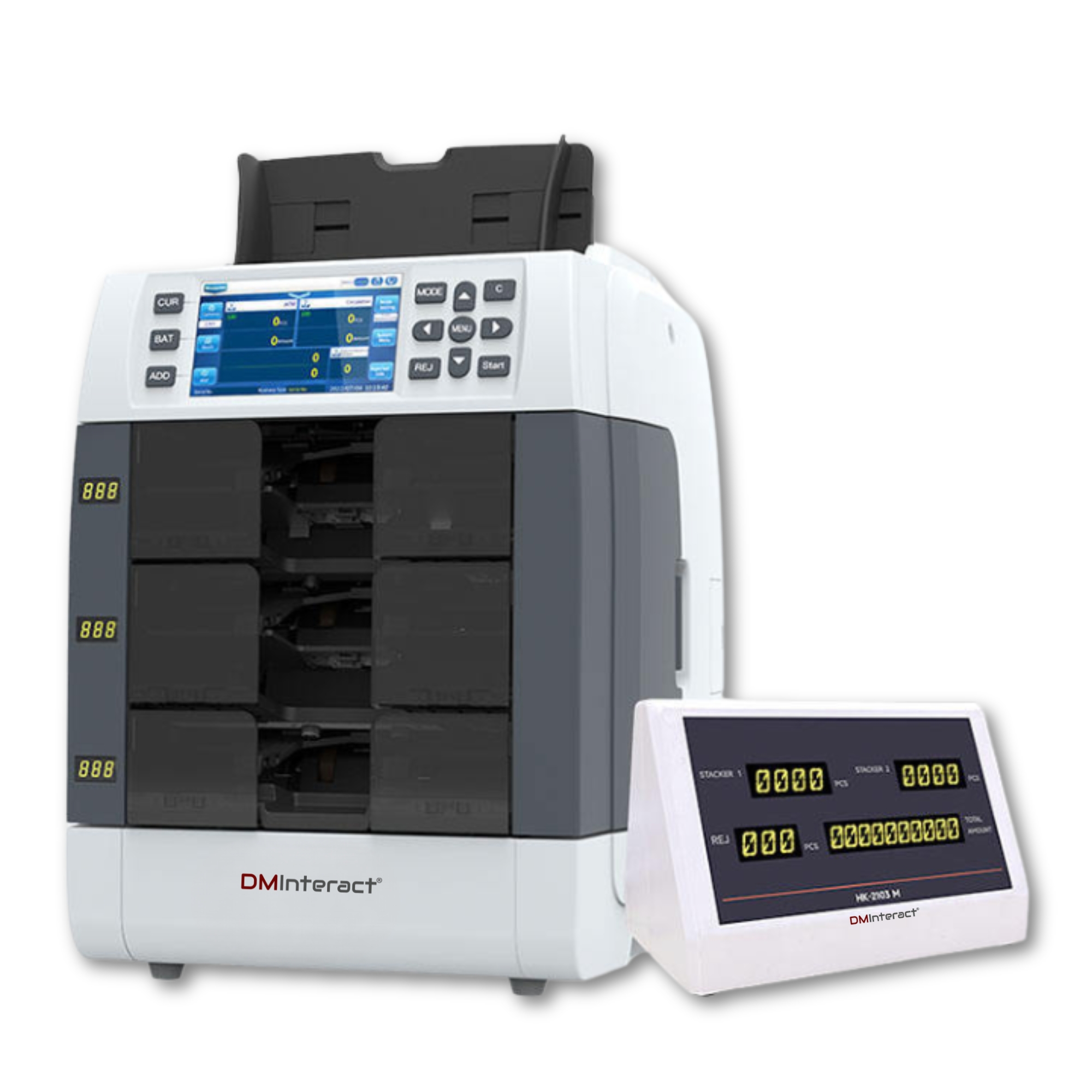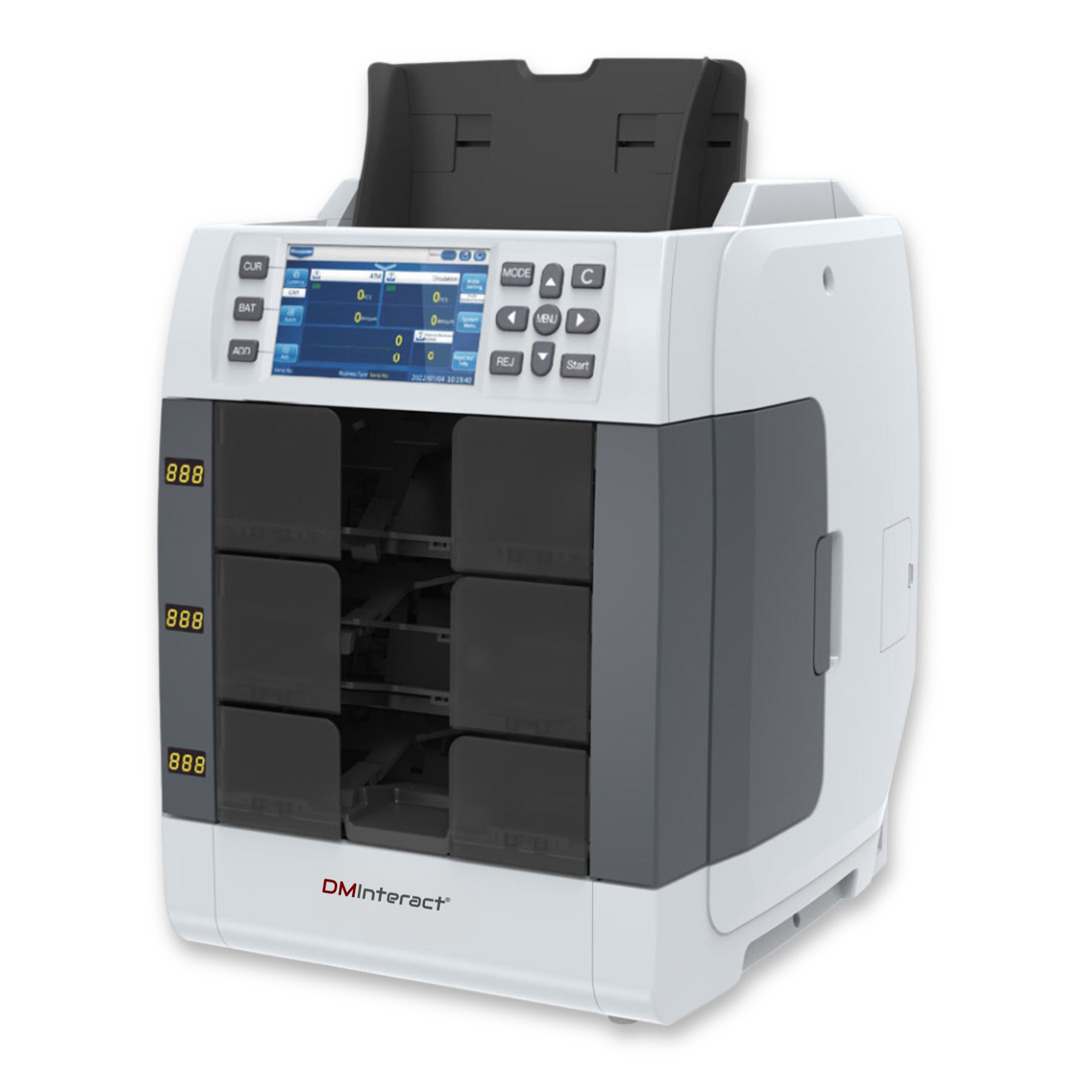 The DMInteract DM‑3000 is a high-performance money counting machine designed for efficiency, accuracy, and versatility. Featuring 3-pocket sorting, it quickly separates notes by denomination, while its high-speed counting capability of up to 1,000 notes per minute ensures fast operations even during peak hours. Supporting up to 65 currencies, this machine is ideal for multi-currency environments. An external display allows clear visibility for operators and customers alike, and advanced counterfeit detection provides reliable security with every transaction. Perfect for banks, retail outlets, and currency exchange centers, the DM‑3000 combines speed, precision, and functionality in one compact counting solution.