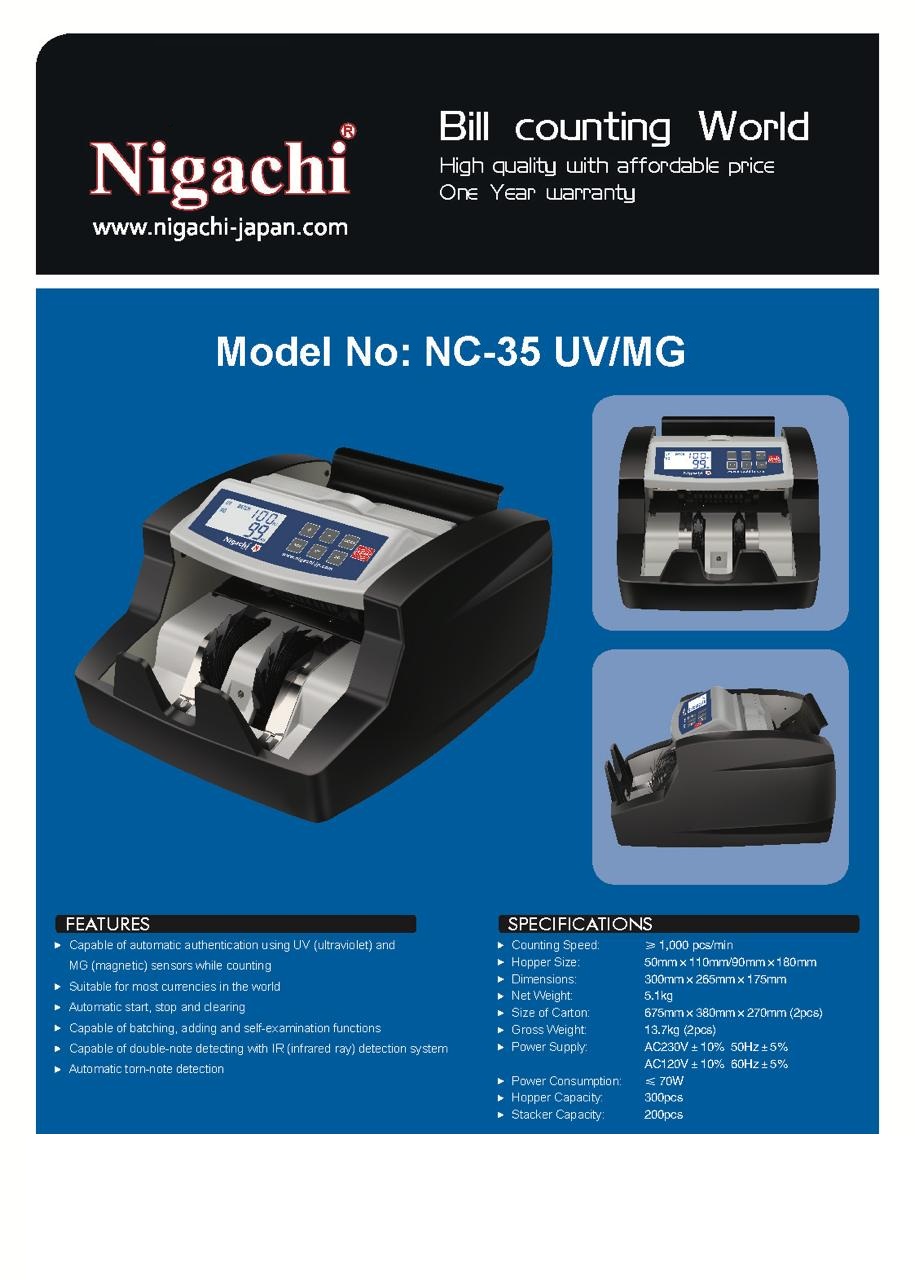 | Product Name | Nigachi NC-35 Back Loading Money Counting Machine with UV/MG Detection |