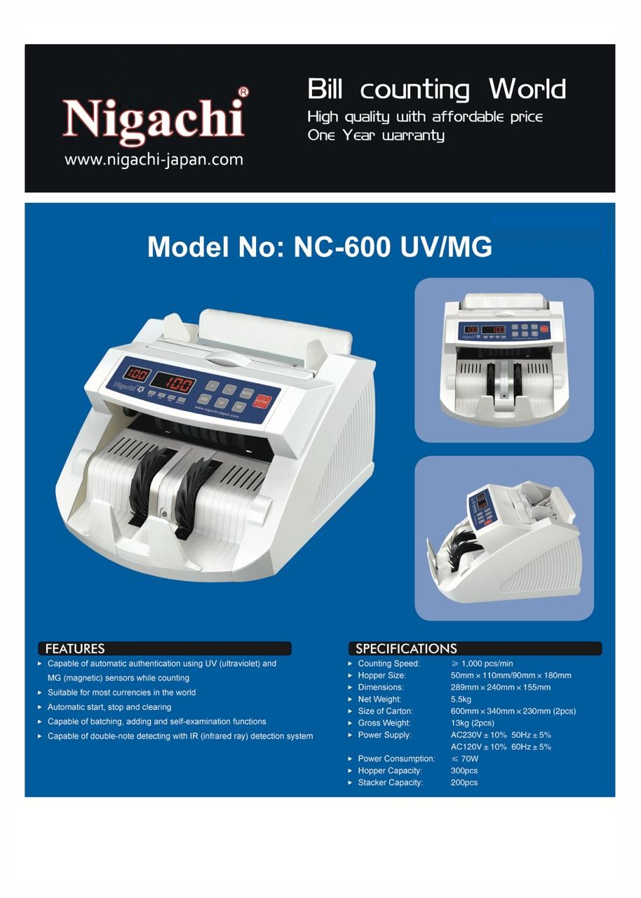 | Product Name | Nigachi NC-600 UV/MG Back Loading Currency Counting Machine |
